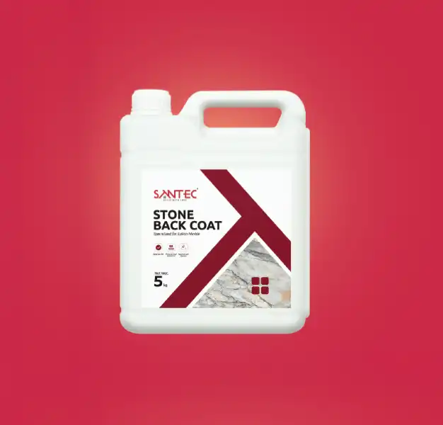 Santec Stone Back Coat works on the concept of solidification. Product works on the concept of penetration, and its structural filling hardens. and solidifies surfaces. It can be used for the top surface coating and also be used as an additive for concrete.